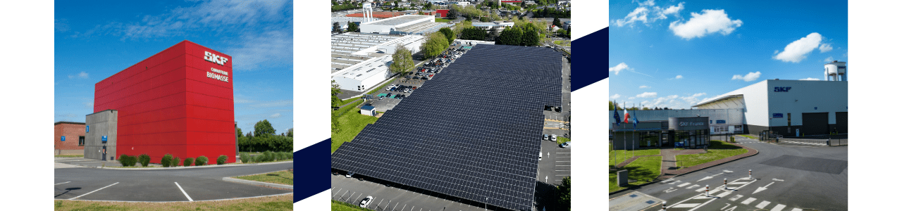 Pour atteindre ces objectifs, le site SKF de Saint-Cyr-sur-Loire a notamment investi dans 13 000 m² de panneaux photovoltaïques installés sur les ombrières du parking des salariés, pour auto-fournir ainsi 6 % de l’électricité annuelle du site. Une chaufferie biomasse est en place depuis 2011 ce qui permet de diminuer environ 2 900 tonnes de CO2 par an. De plus, le site progresse de jour en jour sur l’optimisation énergétique avec l’application Energiency, elle permet de suivre et piloter nos consommations d’énergie (électricité, air comprimé et gaz) ainsi que nos émissions de CO2. Le monde change, nous aussi.